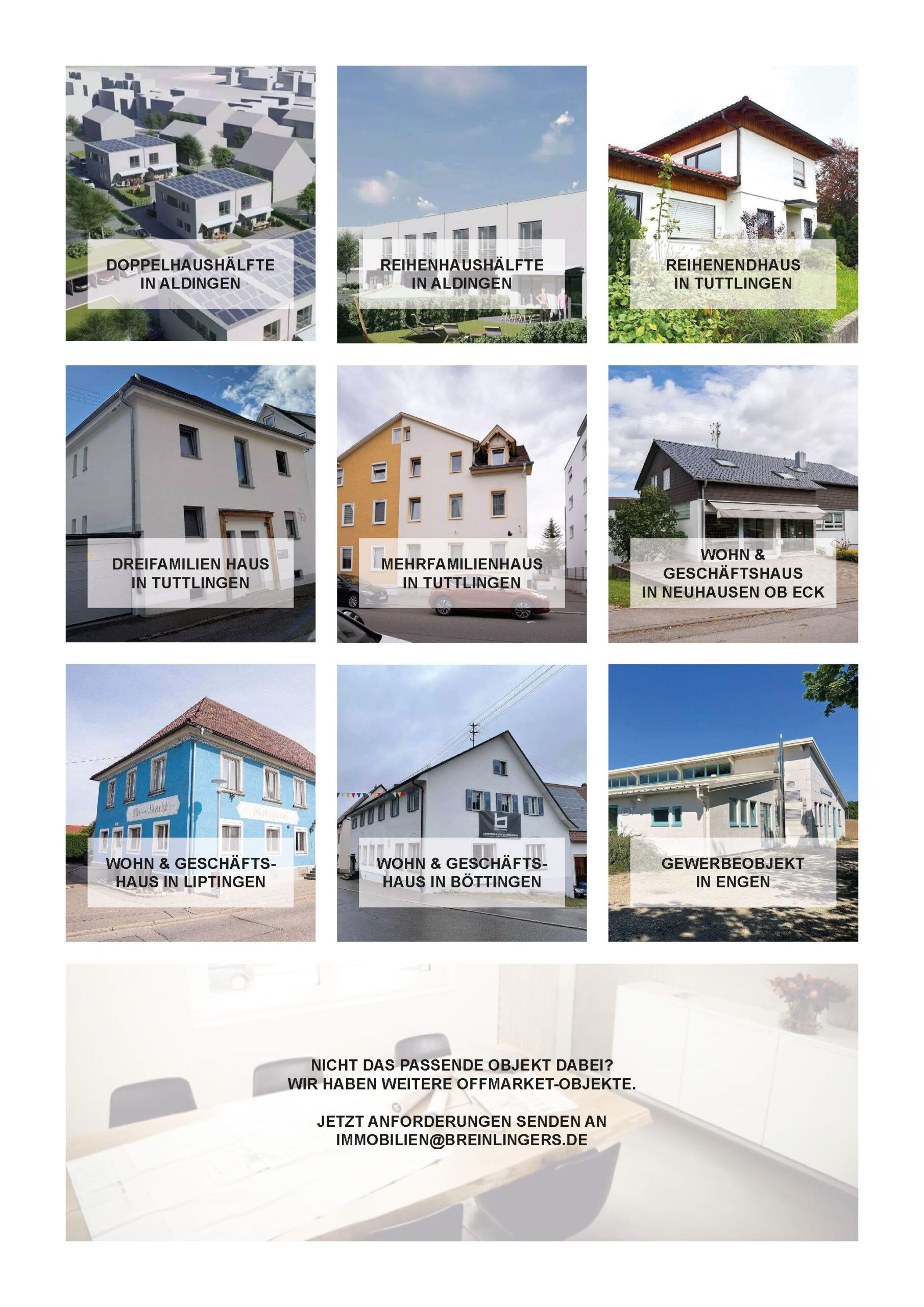 Nachfolgend finden Sie eine Ăbersicht unserer aktuellen Immobilienangebote in Tuttlingen und der Umgebung. FĂźr weitere Informationen zu einem Objekte klicken Sie auf das nachfolgende Bild und dann auf das Objekt, welches Sie interessiert.Â